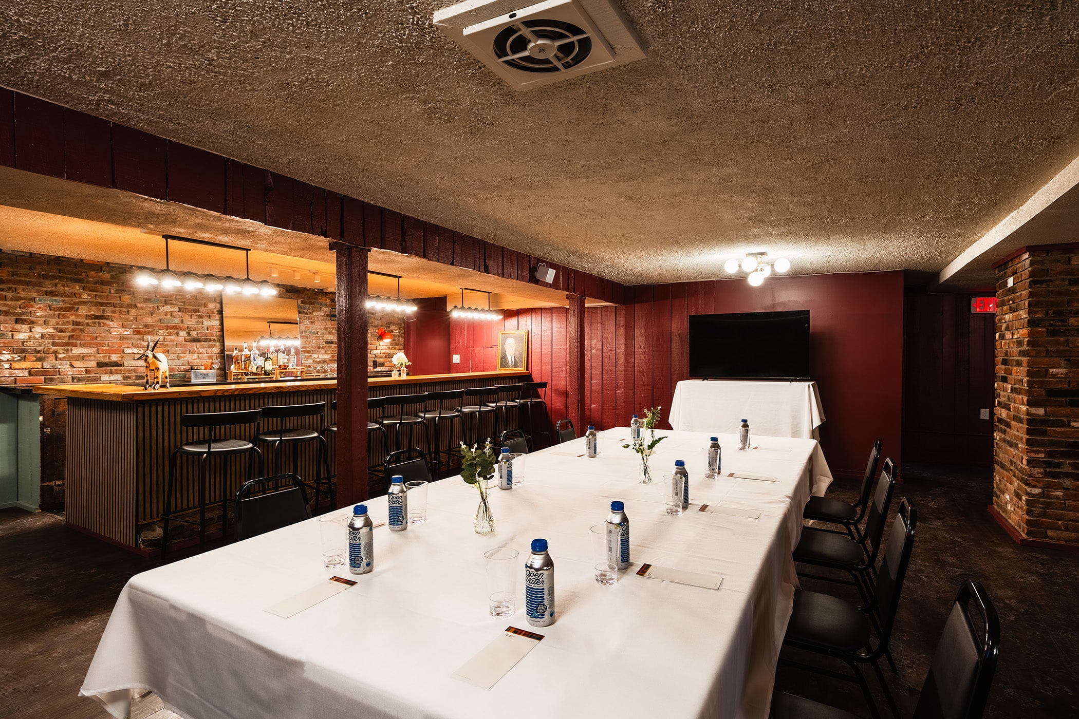 Tucked beneath the main level of Outbound Stowe, this warm, rustic, speakeasy-style venue blends timeless charm with modern comfort. Renovated in December 2025, the space features exposed brick walls, unique accents, and vintage-inspired details that evoke a nostalgic Vermont lodge feel. Cozy booth seating and a wood-burning fireplace create an inviting ambiance, ideal for intimate gatherings and relaxed, memorable experiences. Experience what the locals are talking about.