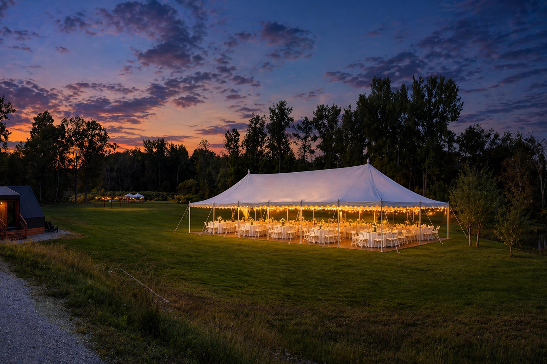 At Outbound Stowe, we always hold an appropriately sized backup space inside our property in case of inclement weather. The client will see the potential backup space, prior to the event confirmation, during the property tour. A weather call must be made the evening prior to ensure enough setup time for vendors and property staff.