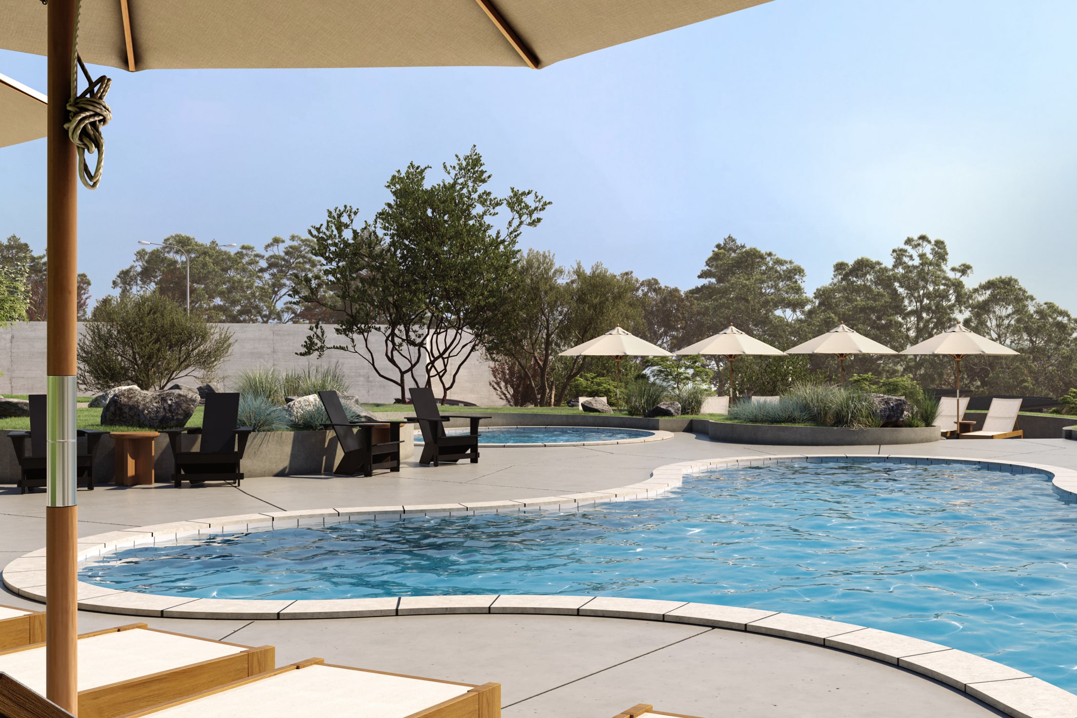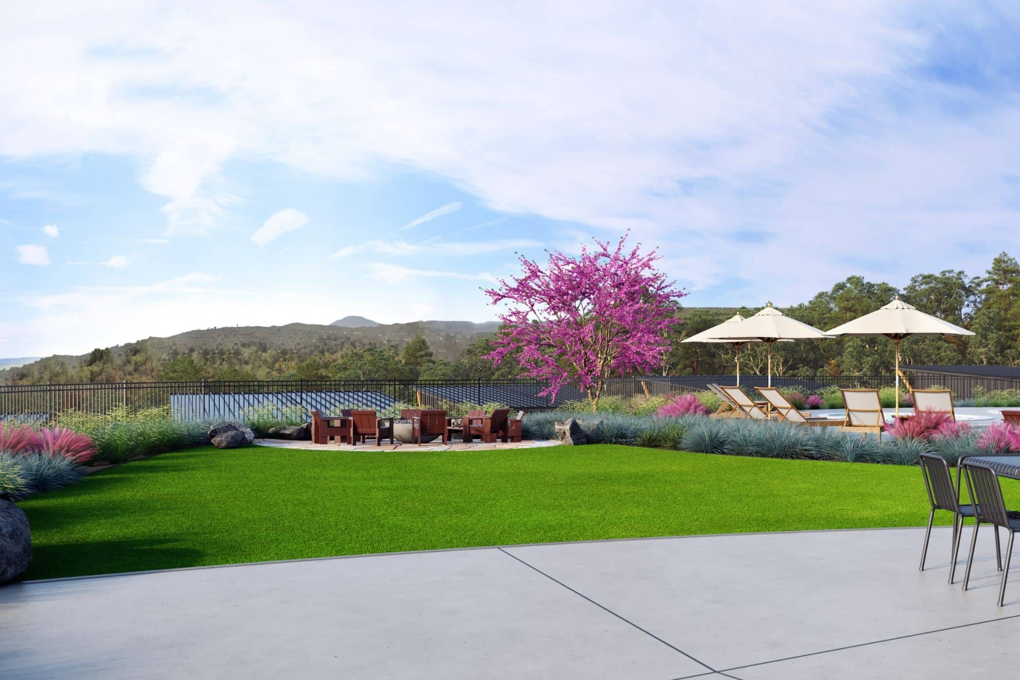 The Outbound Event Lawn offers a naturally elegant canvas for weddings, receptions, and outdoor celebrations. Featuring reclaimed stone surfaces, a rustic firepit gathering circle, and direct views across the resort and valley, this versatile space connects seamlessly to the pool deck for larger buyouts or can stand alone as an intimate, scenic venue under the Sierra sky.